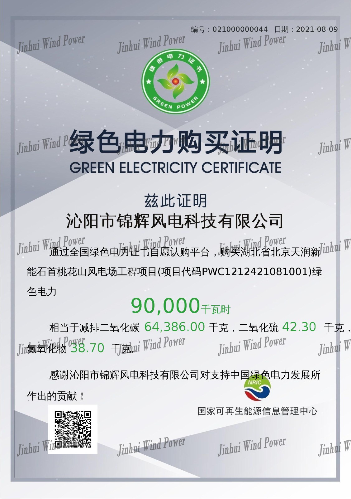 今天我公司正式啟用綠電,開展光伏、風力發(fā)電的電量交易,實現(xiàn)用電零碳排放的目標。在2020.8-2021.7公司總使用電量584541度,綠電使用90000度,使用率是15.4%,綠電全部用于金風產品的生產制造過程,公司承諾5年內綠電使用率達到100%。